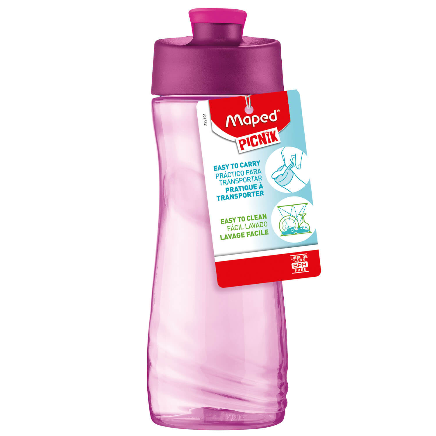 Butelka wielokrotnego użytku wykonana z tworzywa sztucznego. Proste otwieranie jedną ręką poprzez uniesienie zatyczki. Praktyczny uchwyt. Szeroki wlew umożliwia łatwe napełnianie i dokładne umycie butelki. Szczelna zakrętka. Standardowy ustnik. Przystosowana do mycia w zmywarce. Nie przenosi i nie utrzymuje zapachów płynów. Parametry techniczne: pojemność 500 ml, materiał PP- 5, kolor różowy.