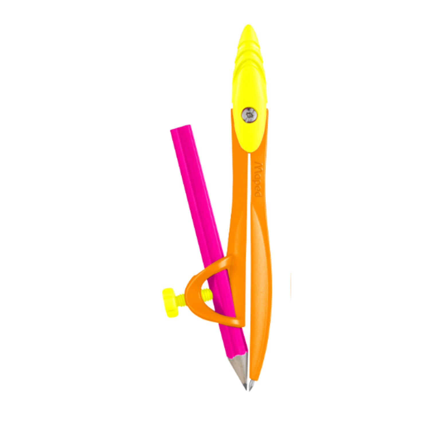 Cyrkiel Study Neon z ołówkiem Neonowy trend niezmiennie urzeka. Nowa kolekcja Maped Neon podąża w tym kierunku. Żywa i przyciągająca wzrok paleta kolorów jest idealnym wyborem dla wszystkich tych, którzy są gotowi odważnie wyrazić siebie. Nasycone i soczyste kolory dodają świeżości i energii rysunkom, notatkom i wnętrzu piórnika. Metalowy cyrkiel Study w kolorach neonowych z uniwersalnym uchwytem na ołówek. Pakowany w plastikowe etui z wbudowaną linijką. Opakowanie zawiera cyrkiel Study oraz ołówek drewniany. Ergonomiczna, plastikowa główka cyrkla w 2 kolorach: pomarańczowym i żółtym, wydawane losowo.