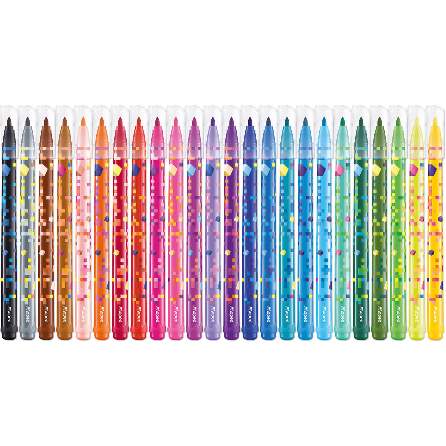 Flamastry z kolekcji Pixel z grafikami z różnokolorowych kwadracików