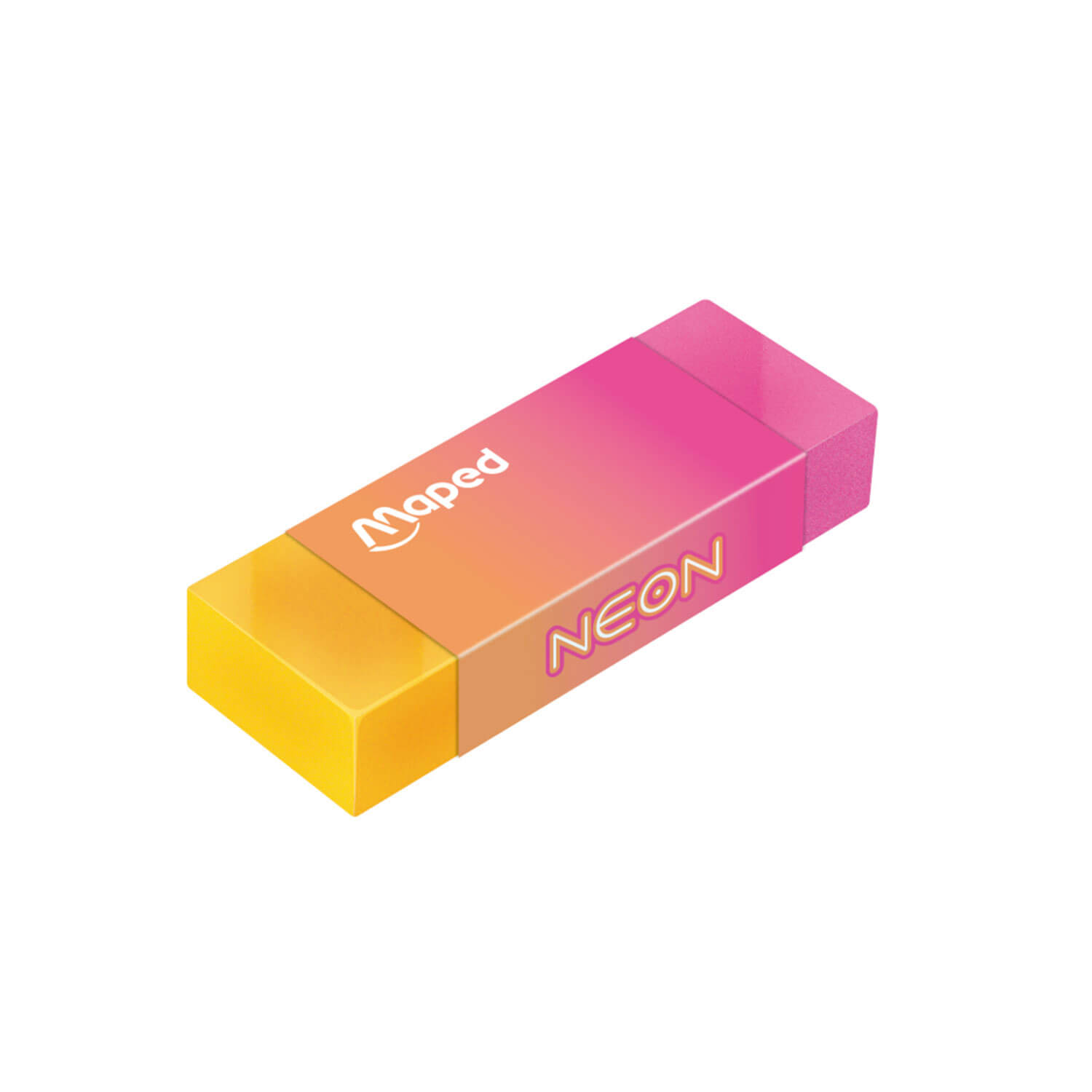 Gumka NeonNeonowy trend niezmiennie urzeka. Nowa kolekcja Maped Neon podąża w tym kierunku. Żywa i przyciągająca wzrok paleta kolorów jest idealnym wyborem dla wszystkich tych, którzy są gotowi odważnie wyrazić siebie. Nasycone i soczyste kolory dodają świeżości i energii rysunkom, notatkom i wnętrzu piórnika świeżości i energii. Gumka Neon o klasycznym, prostokątnym kształcie. Uniwersalna w zastosowaniu. Miękka, wydajna i ergonomiczna. Nie zostawia kolorowych smug na papierze. Kolor rozłożony gradientowo na całej powierzchni i wewnątrz gumki. Dostępna w 2 tonacjach kolorstycznych: żółto-pomarańczowej i różowo-pomarańczowej. Wymiary gumki: 22x12x61mm. Kartonowa owijka zabezpiecza przed zabrudzeniem. Wyprodukowane we Francji.JS.: 2 sztuki na blistrze.