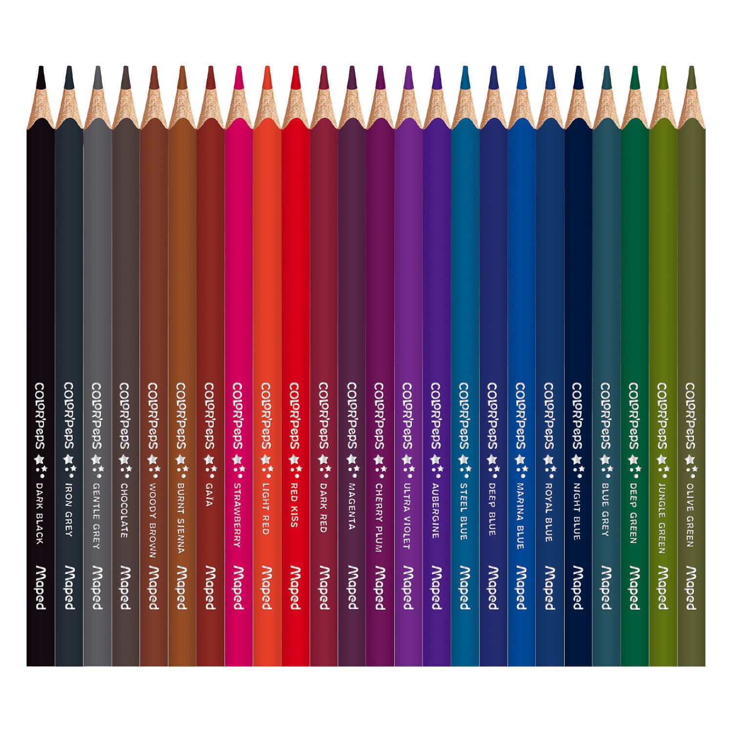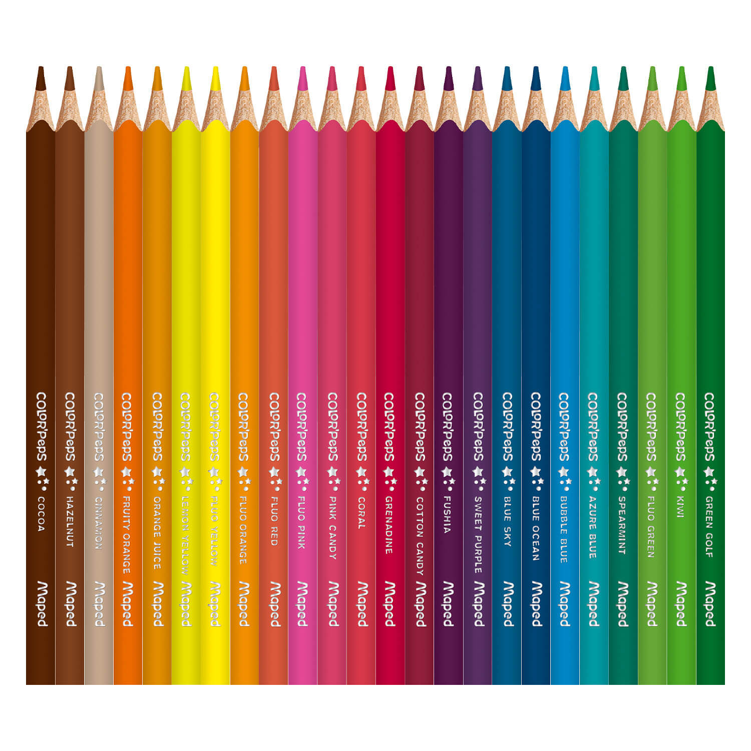 Kredki Color’Peps Star są wykonane z drewna lipowego. Trójkątny, ergonomiczny przekrój. Intensywne kolory. Łatwe do temperowania. Grafit o przekroju 2,9 mm, odporny na kruszenia i łamanie. Wyprodukowane zgodnie z wszystkimi regulacjami dotyczącymi produktów dla dzieci. 72 kolory pakowane w kartonowe etui.