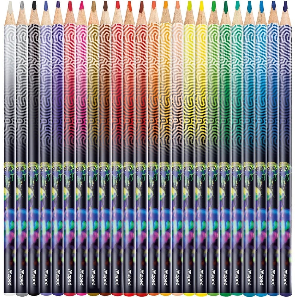 Kredki ołówkowe z podwodnej kolekcji Deepsea w 24 kolorach. Trójkątny, ergonomiczny przekrój. Intensywne kolory. Grafit odporny na kruszenie i łamanie. Łatwe do temperowania. Elegancki korpus ozdobiony grafikami morskich głębin. Wyprodukowane zgodnie ze wszystkimi regulacjami dotyczącymi produktów dla dzieci.