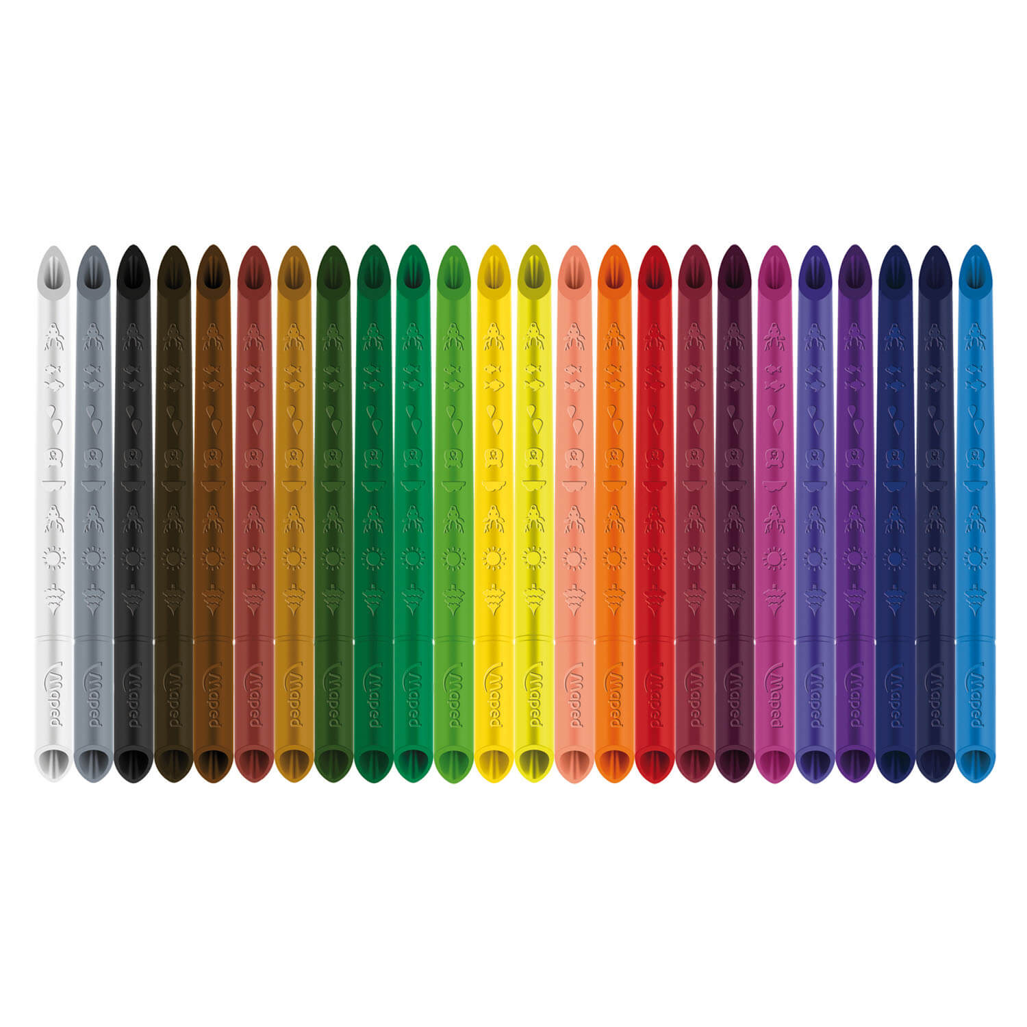 Grafitowe kredki INFINITY to nowy rodzaj kredek Maped! Kredki wykonane w 100% z kolorowego grafitu, nie mają obudowy. Wyjątkowy kształt pozwala kolorować z obu stron kredki. Kredki są puste w środku, co zwiększa ich trwałość i powoduje, że zawsze znajdziemy dobrą krawędź do rysowania. Trójkątny przekrój zapewnia poprawny chwyt. Trwałe i wydajne. Nie brudzą rąk, nie wymagają temperowania. Można je zużyć do końca = zero waste. Kredki są zapakowane w kartonowe etui zawierające 24 kolory.