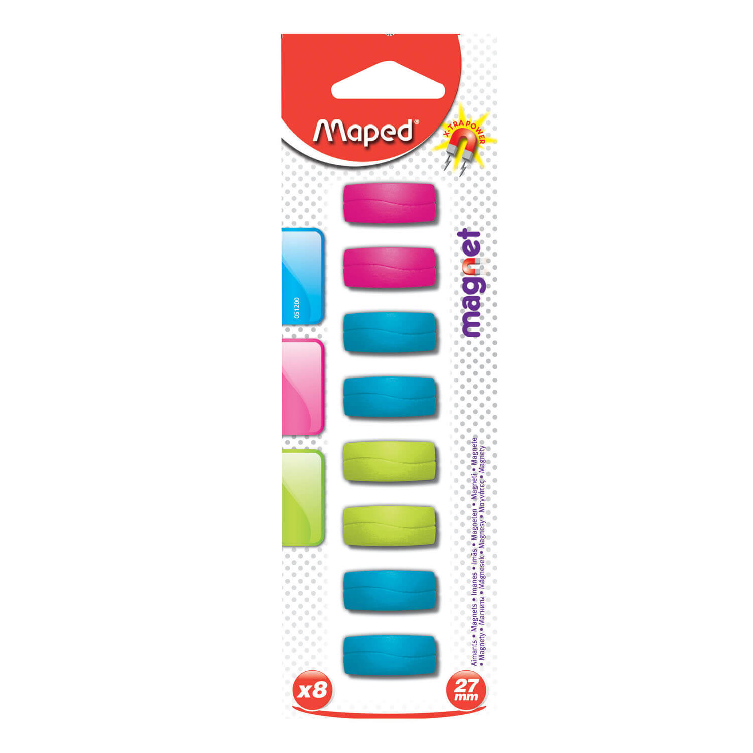 Magnesy prostokątne 27 mm. Atrakcyjne kolory i kształty. Wysokie właściwości magnetyczne. Miks kolorów: różowy, niebieski i zielony.