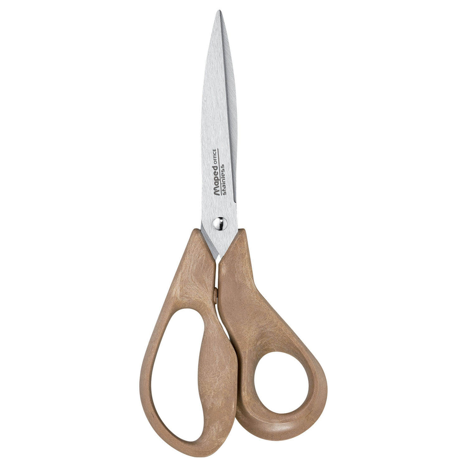Ekologiczne nożyczki Advanced Wood o długości 18 cm. Wygięte w łuk ostrza i nit wykonane ze stali nierdzewnej. Trwałe, asymetryczne uchwyty, wyprofilowane i dostosowane do każdej wielkości dłoni. Produkt ekologiczny – uchwyty wykonane z kompozytu drewno-tworzywo: jest to wysoce zaawansowany surowiec pochodzenia naturalnego, charakteryzujący się cechami przyjaznymi dla środowiska poprzez drastyczne zmniejszenie udziału tworzywa sztucznego w produkcie na rzecz naturalnych wiórów drzewnych. Włókno drzewne stanowi 50% składu. Produkt w 100% nadaje się do recyklingu. Gwarancja 10 lat.