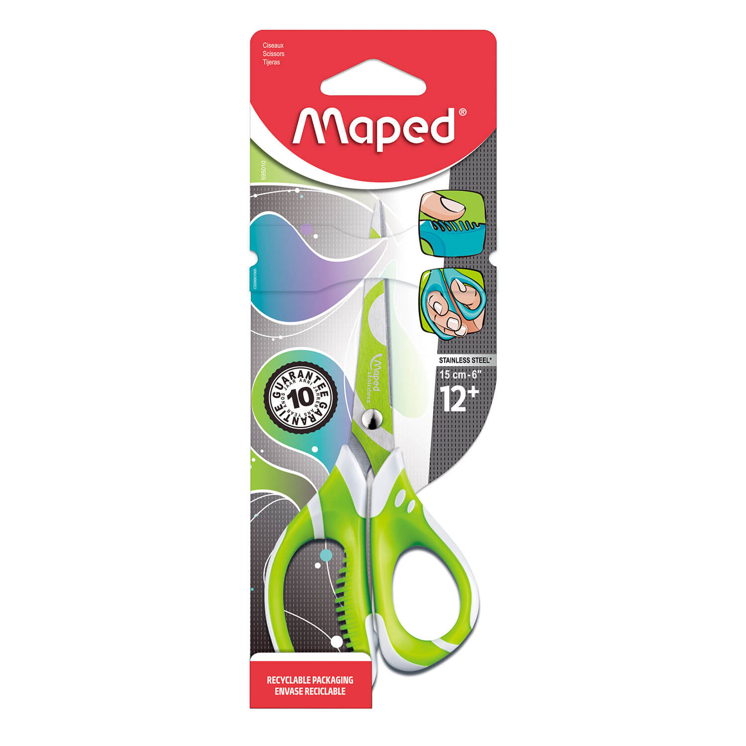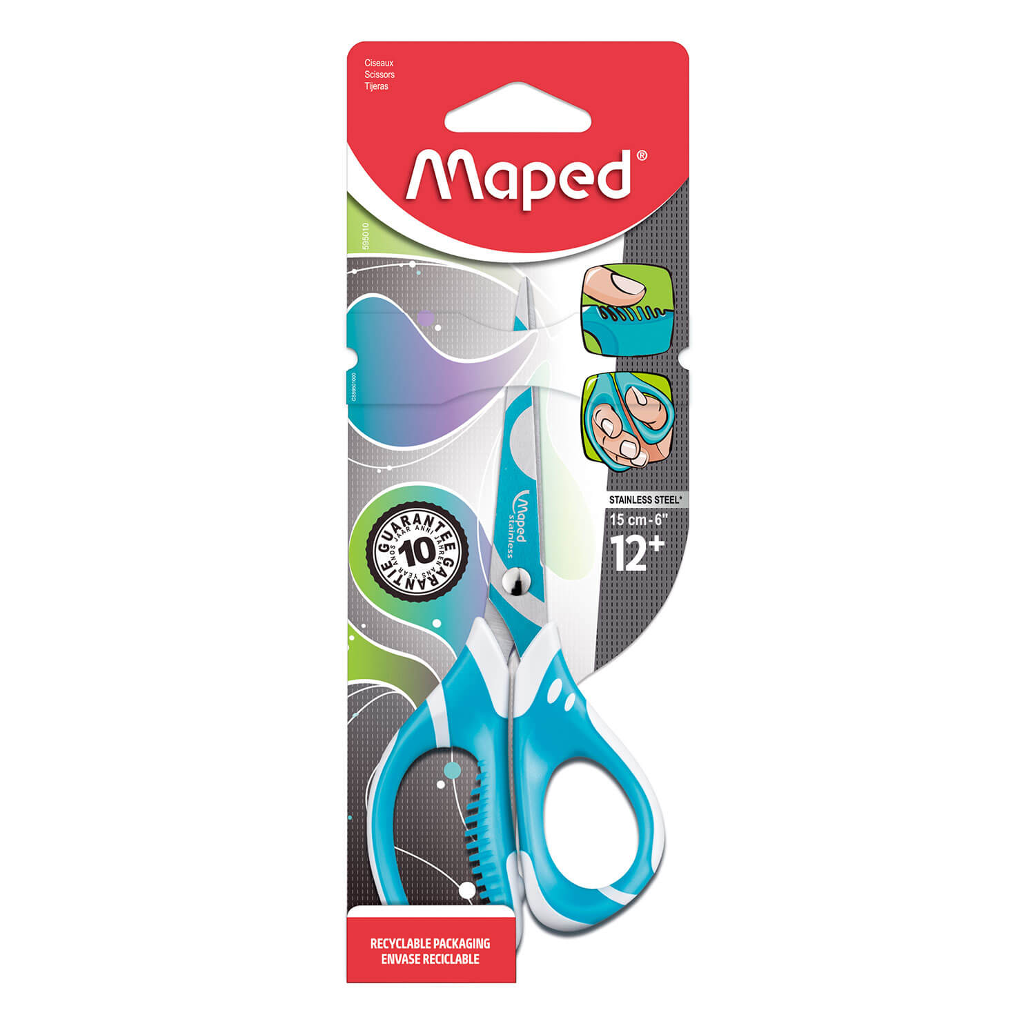Nożyczki ergonomiczne we wzory. Nożyczki ZENOA z ostrzami i nitem wykonanymi z najwyższej jakości stali nierdzewnej. Posiadają ergonomicznie wyprofilowane, miękkie, asymetryczne uchwyty. Odporne na pęknięcia i odpryski. Dwukrotnie ostrzone. Długość 15 cm. 10 lat gwarancji.