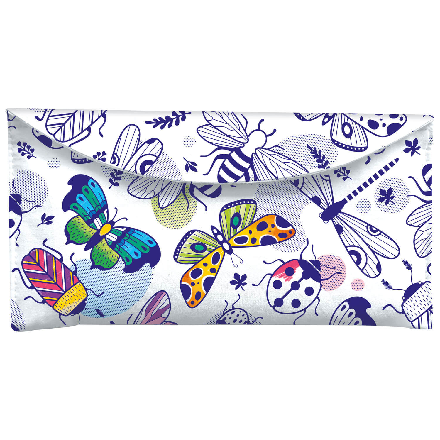 Piórnik do kolorowania z zestawem flamastrów. Piórnik jednokomorowy Color’Peps jest wykonany w 100% z bawełnianej tkaniny, zapinany na rzep. Nadrukowane wzory do pokolorowania kredkami lub flamastrami spieralnymi. W zestawie 12 kolorów flamastrów Long Life i 12 kolorów kredek Strong.