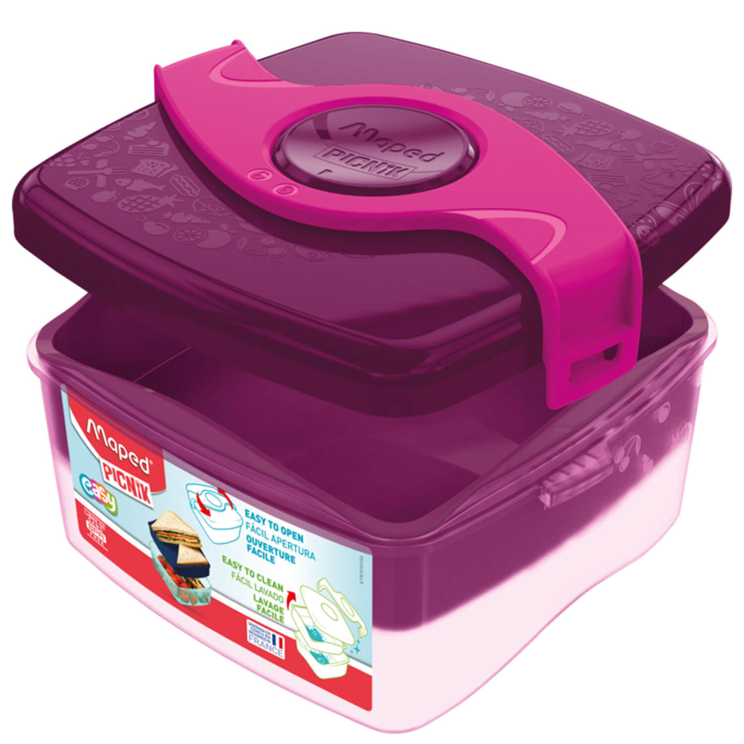 Pudełko lunchowe Maped Picnik Origins to dwukomorowe, stylowe pudełko lunchowe wykonane z tworzywa sztucznego. Umożliwia oddzielenie od siebie różnych składników i pozwala dłużej zachować ich świeżość. Wyjmowany element ułatwia podgrzewanie części posiłku. Proste otwieranie jednym ruchem. Przystosowane do mycia w zmywarce i podgrzewania w kuchence mikrofalowej. Nie przenosi i nie utrzymuje zapachów żywności. Zaokrąglone krawędzie. Spełnia normy europejskie dla produktów przeznaczonych do kontaktu z żywnością. Pojemność 1,4 l. Kolor różowy.