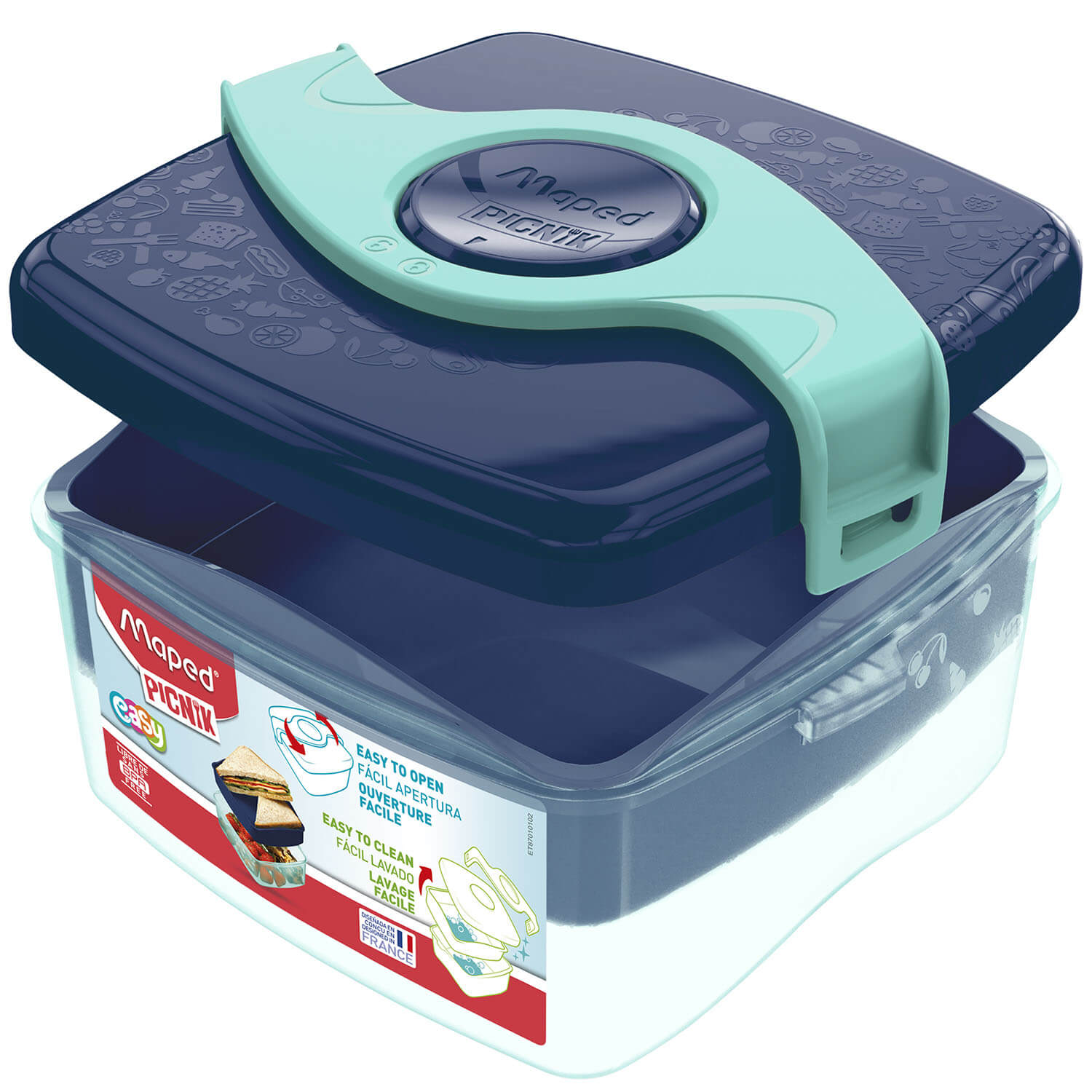 Pudełko lunchowe Maped Picnik Origins to dwukomorowe, stylowe pudełko lunchowe wykonane z tworzywa sztucznego. Umożliwia oddzielenie od siebie różnych składników i pozwala dłużej zachować ich świeżość. Wyjmowany element ułatwia podgrzewanie części posiłku. Proste otwieranie jednym ruchem. Przystosowane do mycia w zmywarce i podgrzewania w kuchence mikrofalowej. Nie przenosi i nie utrzymuje zapachów żywności. Zaokrąglone krawędzie. Spełnia normy europejskie dla produktów przeznaczonych do kontaktu z żywnością. Pojemność 1,4 l. Kolor zielono-granatowy.