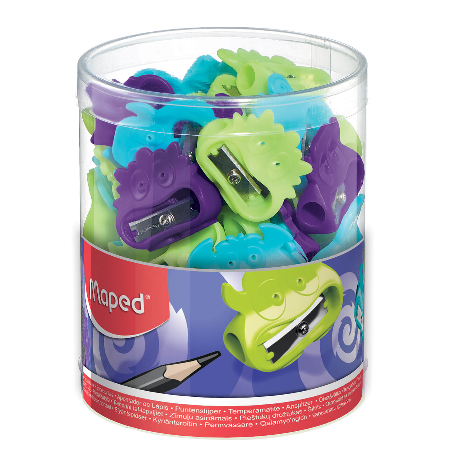 Temperówka Vivo Monster ma kształt uwielbianych przez dzieci potworków. 5 ekspresyjnych wzorów w 3 kolorach: niebieski, zielony i fioletowy. Jeden klasyczny otwór o średnicy 8 mm.